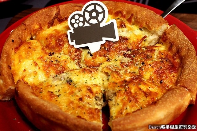 來到這裡我超推薦這款黑松露醬蛋黃起士深盤披薩難得在主題餐廳可以吃到那麼好吃的餐點