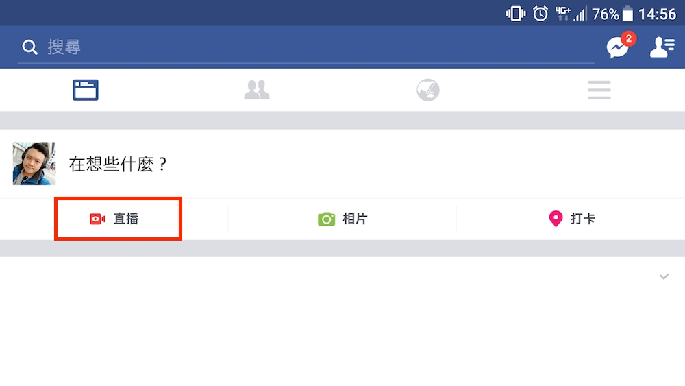 完成「畫面自動旋轉」設定後,接著請啟動 Facebook App,並將手機轉為橫置,這時 Facebook App 畫面就會從直立轉為橫向。接下來只要點選「直播」功能,即可完成準備程序。