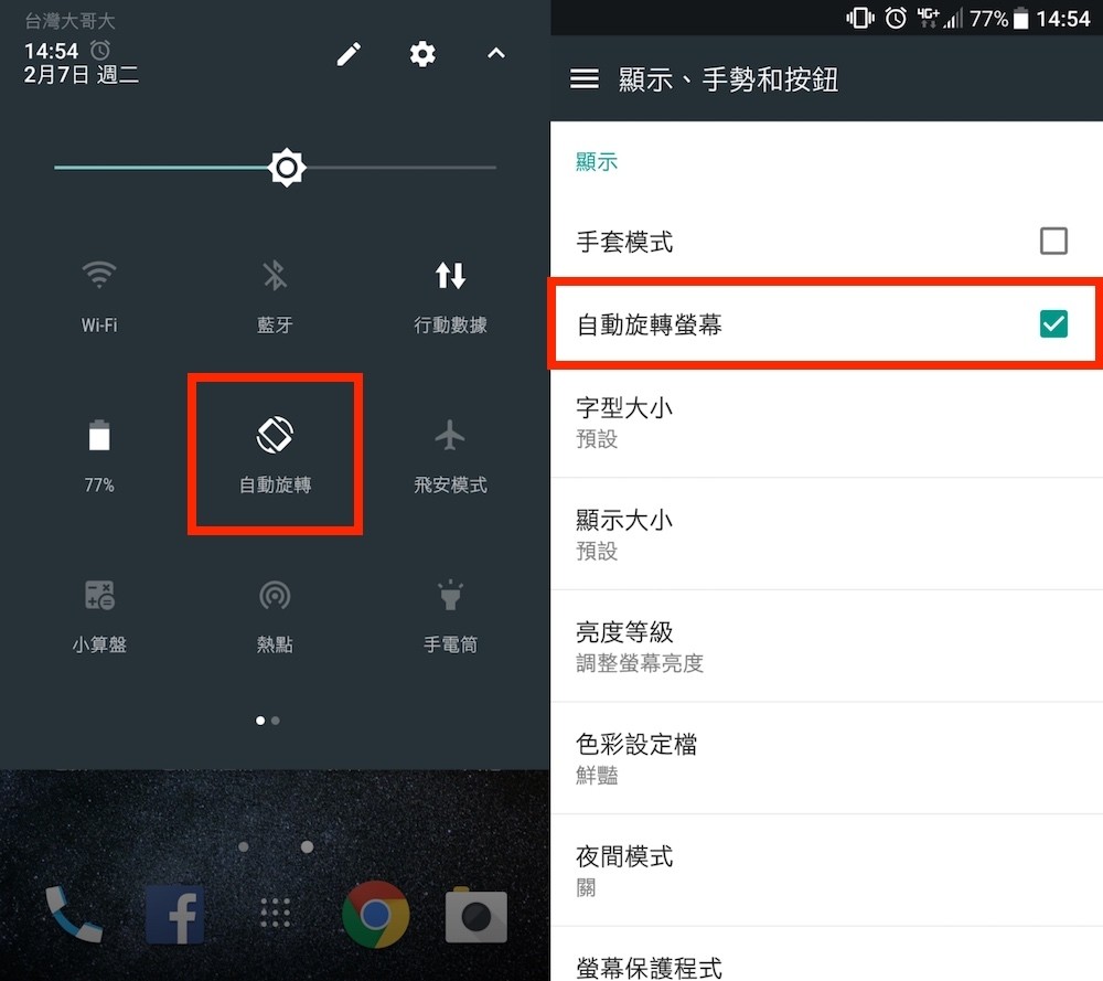 第一步 – 務必啟動手機「畫面自動旋轉」功能