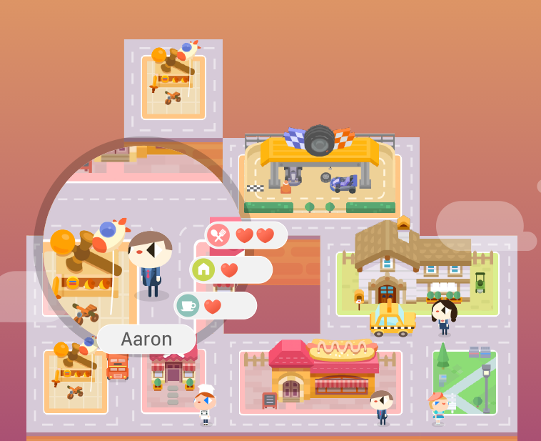 輸入完消費項目後,回到 app 主畫面我們就能看到商店出現在其中。這邊 Candice 試了輸入用餐的費用,它就給了我一間餐廳!若是輸入兩筆,這兩間餐廳還可以合併讓店面變得更大!所以若是這樣記帳下去,相信我們的消費世界中,應該就會有著各式各樣像是 Shopping Mall、3C 旗艦館、豪華無比大飯店這樣的商店吧?! 而且每一間商店也都是能夠拖曳重新擺放位置,就像是打造自己專屬的消費城市一樣。