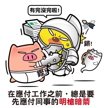 1.在應付工作之前,總是要先應付同事的明槍暗箭