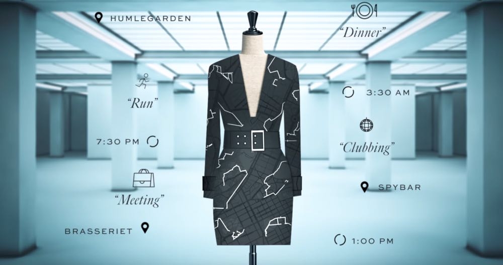 這項驚人個資變成設計的服裝名為 “data dress” 是由 Google 與 H&M 旗下的數位科技服飾 Ivyrevel 合作,透過消費者的同意和授權,Ivyrevel 將會自授權後的 7 天來從 app 上來得到相關的 Google 資料,包括運動範圍、行事曆、天氣資料等數據,並且將它轉換成視覺化的圖案顯示在衣服上。