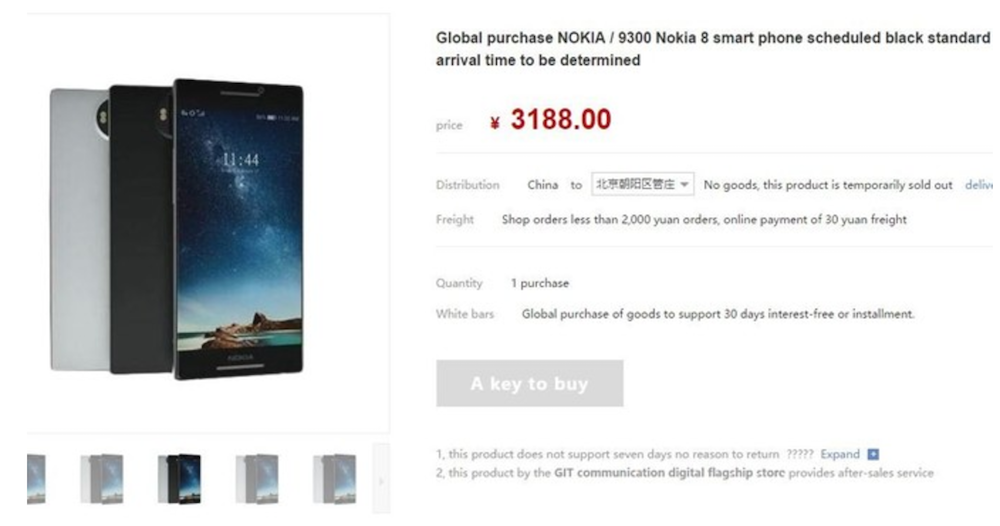 根據國外媒體報導指出,京東商城前幾天在賣場中曝光了一款型號為 Nokia 9300 的手機價格,從國外媒體的推論來看,型號 Nokia 9300 的手機非常有可能是將於 2 月 26 日發表亮相的 Nokia 8。但最讓人感到驚訝的不只是型號曝光,僅售 3188 人民幣,換算為台幣也只要一萬五千元有找的價格才是令人驚訝的亮點。若真採用 Snapdragon 821 處理器、6GB RAM/64G or 128GB ROM,再搭配 5.7 吋 QHD 螢幕、2260 萬畫素相機,那麼 Nokia 8 上市後肯定會是一款造成搶購的旗艦手機。