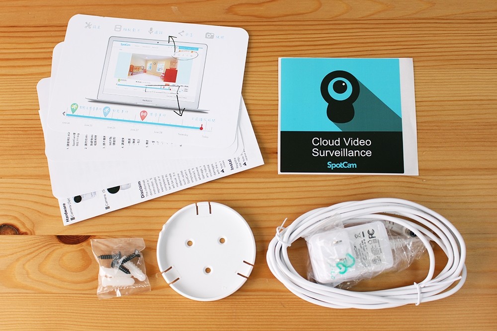 是的!不用再扛著電腦主機了,說明書也可以丟掉了,因為安裝門檻真的很低,室內版和戶外防水版的標準包裝中,除了監控主機本體之外,只有簡單的使用說明、110V 的電源線和固定裝置安裝套件,並貼心提供壁虎和螺絲方便固定。簡單來說,唯一需要連接到 SpotCam 的真的只有電源線而已。