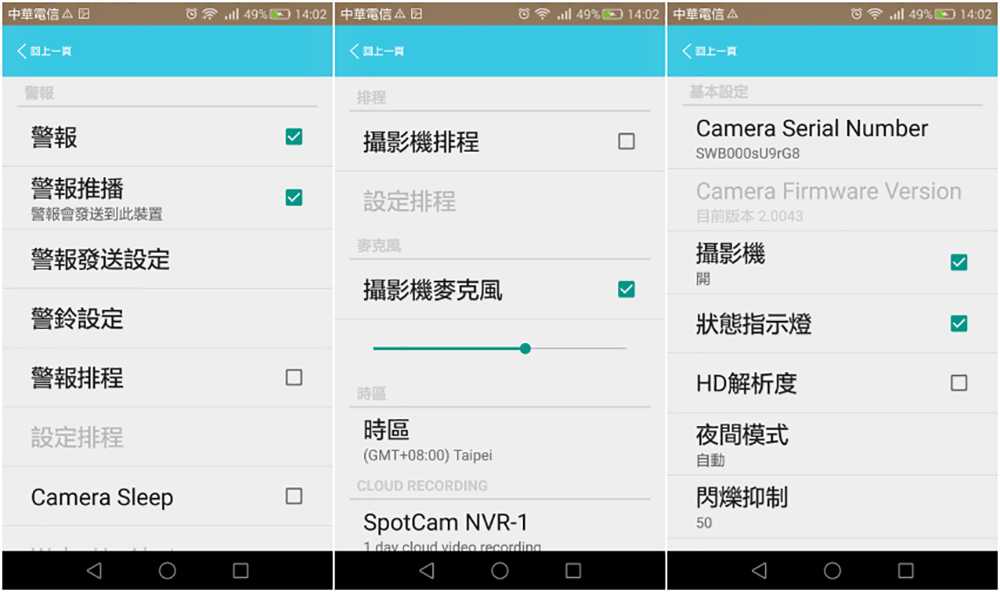 在設定上也提供了非常完整的功能,在 APP 介面就能進行操作,從警報、攝影機排程以及各項遠端控制設定,整個一目瞭然!