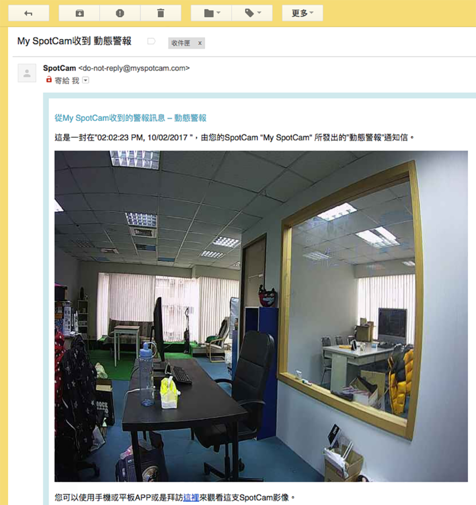 就算在上班工作,也可以從 Email 或手機 App 訊息收到警報動態。