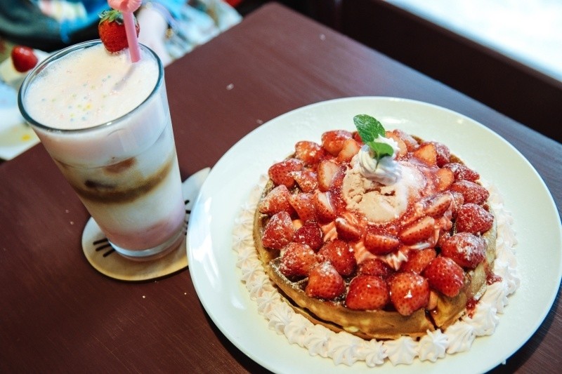 為了和草莓鬆餅搭配一系列,連飲料都選草莓歐蕾,粉色系的層次感也是非常好拍照呦。