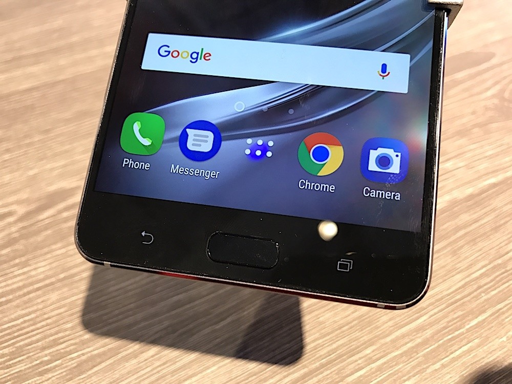 在 ASUS ZenFone AR 的螢幕下方,則是設置了兩個電容式按鍵與具有 Home 鍵的指紋辨識器,用戶可以透過指紋辨識器來保障手機個資安全。