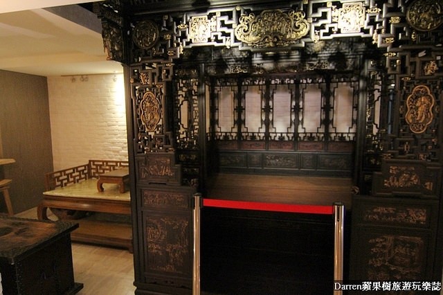 紅眠床是台灣早期大戶人家的家具,除了提供睡覺休息之外也象徵地位,不論是木材及雕工都有觀賞價值