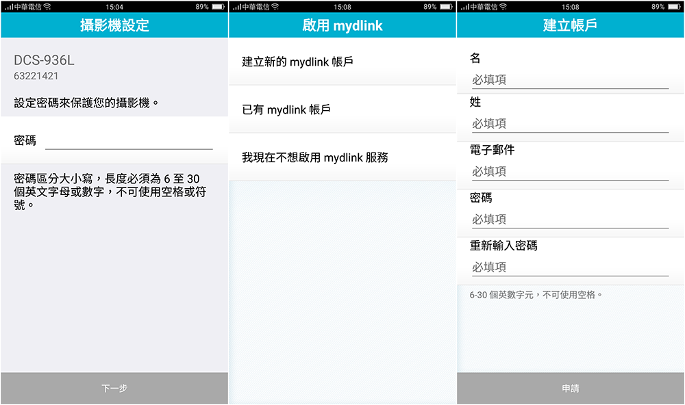 接著就是設定密碼來保護攝影機,並啟用 mydlink 的服務。