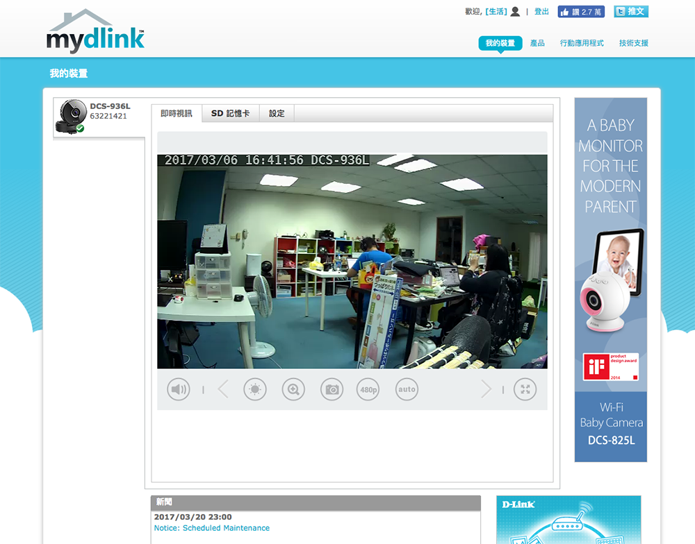由於支援 mydlink 功能,登入系統就可以直接遠端操控 D-Link DCS-936L 無線網路攝影機,並能夠同時管理多台攝影機或是使用其他支援 mydlink cloud 的產品,因應物聯網趨勢,結合 mydlink 雲端平台和 App 的各項應用,打造智慧家庭也愈來愈簡單了。