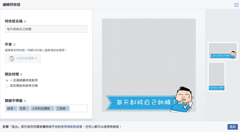 3) 製作完成送出! 是的,就這麼簡單,不過特效框是需要先行審核的,時間大約為一週。