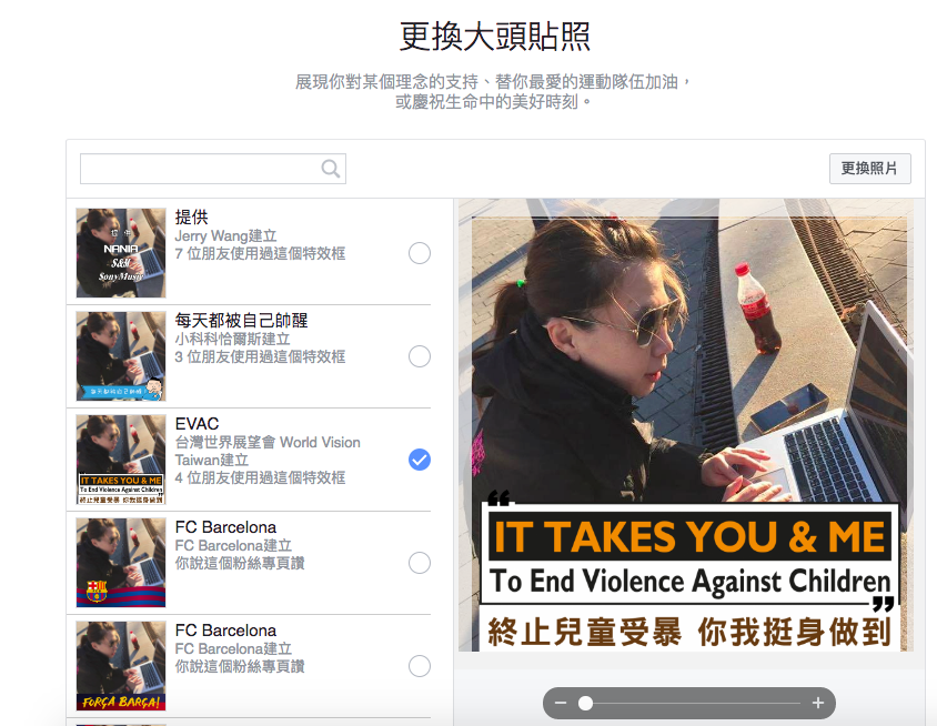 若是覺得製作起來太麻煩也沒關係,Facebook 也有許多大方的朋友分享了他們設計的特效框,甚至有些還是依照地點來分享,讓我們在旅遊的時候也能直接更換讓大頭照變得更有紀念性!