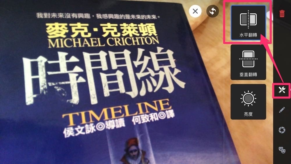 其實 Facebook 已經悄悄地為大家解決了這個困擾,只要在直播時從畫面的右側設定中,選擇工具的圖示,這時便能見到「水平翻轉」、「垂直翻轉」以及「亮度」三個選項,而「水平翻轉」就是我們這次想要的校正功能囉!