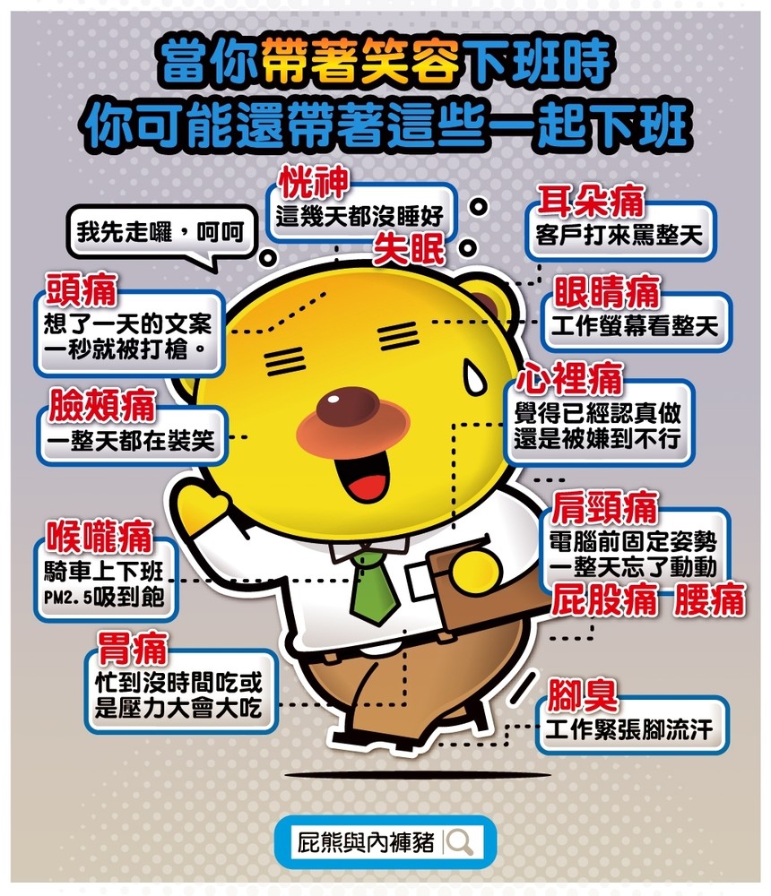 除了上面的所說的病痛外,這種痛也是非常傷身的,我想出社會的人肯定都有這樣的經歷,並不是我們做的不好,有時被嫌只是對方為了表現出好像自己很厲害,然後挑一些很莫名奇妙的問題要你再修再改,讓你根本摸不著頭緒對方到底要的是什麼了,這方面屁熊經歷很多(淚)