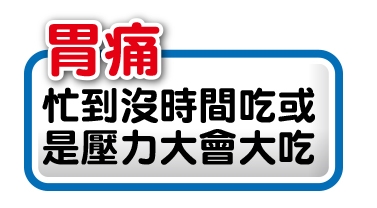 現在很多人的通病,真的不是忙到沒時間吃,或是只能隨便果腹一下,長期下來壓力大還會讓自己不小心就大吃大喝來發洩壓力,之後胃痛,消化系統的毛病就會開始找上你了…胃痛真的非常痛苦,屁熊到現在都有這個毛病…尤其半夜去急診的次數已經數不清了。