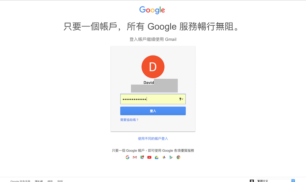 看到登出選項後,請直接點擊。接著就會出現 Gmail 的登入畫面,這樣就代表登出成功。不過,必須注意的是,若使用的電腦為公用電腦,在第一次登入 Gmail 帳號前請不要讓網頁瀏覽器自動記下帳號密碼,免得被其他人盜用。相反的,如果是自己的電腦,且不會借給他人使用,就可以不用擔心這些問題。
