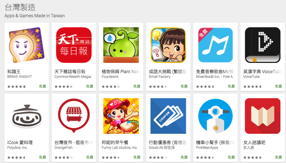 講了一堆大家使用的數據相信大家或許也沒有什麼特別感覺,簡單說就是在 2016 年中,台灣的用戶們對於 Google Play 有著越來越多的支持,不僅是用戶支持,台灣的 App 開發者更是踴躍的加入,因此在歡慶台灣 5 歲生日的今天,Google Play 特地為大家整理出「台灣製造」專區,讓台灣用戶更能輕鬆的在 Google Play 中支持台灣的應用程式!