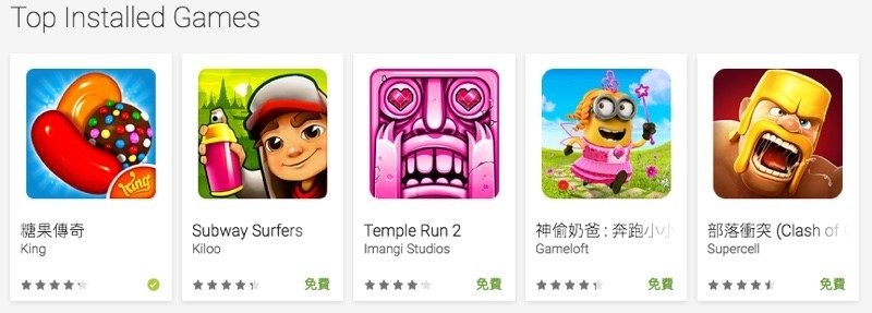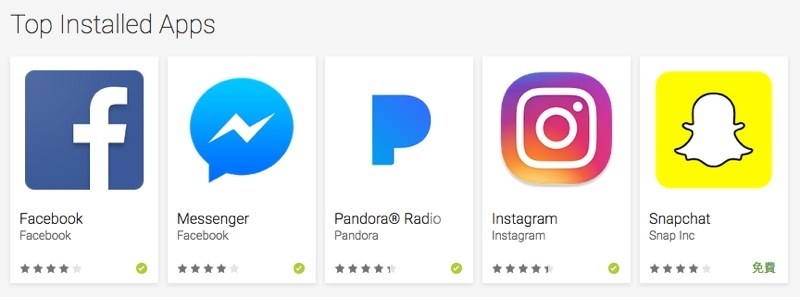 。TOP INSTALLED APPS (下載應用程式) – 這部分指的是用戶從 Google Play 下載的,不包括預載在手機之中。