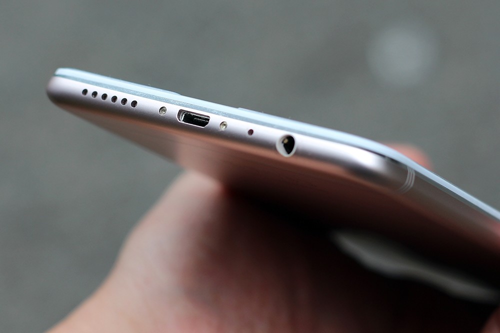 底部從左到右分別為揚聲器、micro USB 連接埠、麥克風以及 3.5mm 耳機插孔。