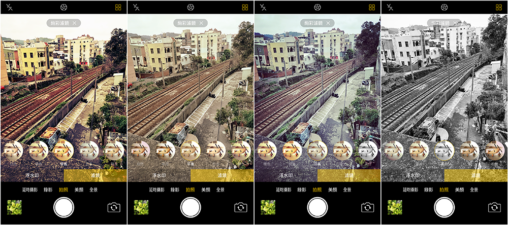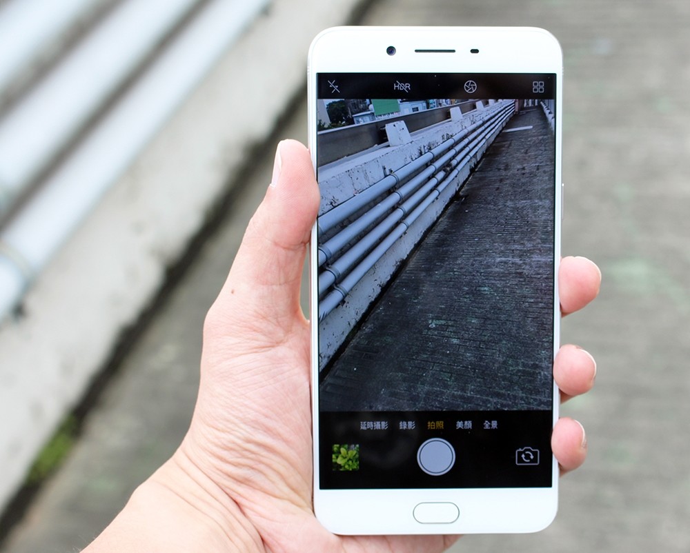 另外拍照介面的頂端有四種主要設定可以選擇,像是控制閃光燈、HDR開啟、畫面比例、倒數拍照、到各種濾鏡,OPPO R9s Plus 裡面內建就滿完整了。