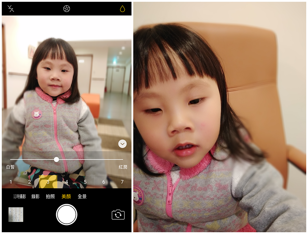 可以控制人臉的白皙和紅潤的比例,還有讓人像後面背景虛化的功能,更能凸顯主體。