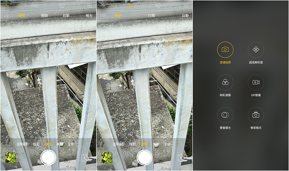 此外主鏡頭拍照功能提供了如:延時攝影、GIF動畫、專業模式、超高解析度、絢彩濾鏡、雙重曝光…等,都是非常好用的拍照功能。