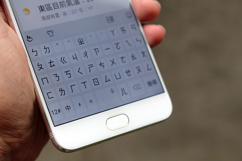 螢幕下面設計了觸控式的指紋辨識按鍵,平常可以當 Home 鍵返回主頁,同時在指紋辨識有設計了固態疏水膜,平常手指就算稍微有點濕濕的還是可以快速解鎖,而且解鎖速度是目前市面上最快的,用過就能很明顯感受得到,Home 鍵兩側就是多工與返回鍵。