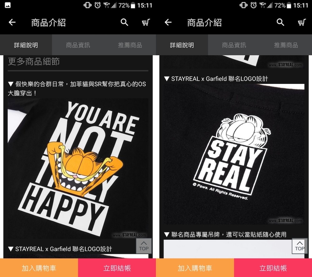 雖然筆者自己並沒有在 STAYREAL 實體店面、線上商城、STAYREAL AIRMALL 行動商城消費過 (泣),但經過幾天摸索下來覺得 STAYREAL AIRMALL 行動商城是個介面設計完善且又非常好上手的購物 APP,畢竟 STAYREAL 實體門市並非每個城市都有,而使用電腦的線上商城又不比手機方便。所以,若你是個 STAYREAL 服飾、配件的愛用者,但所居住的城市並沒有 STAYREAL 實體門市,那就趕快到 Play 商店或 APP Store 下載 STAYREAL AIRMALL 行動商城,然後好好的在行動商城中逛逛吧。