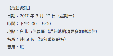 根據「小米台灣即將發佈米家新品」活動頁中我們可以發現米家新品發表會將於 3 月 27 日(一)下午 2:00 在信義區舉辦,活動中共計畫邀請 150 名米粉。而預約活動則是從即日起至 16 日中午 12:00 前,透過該活動網頁來進行報名。統一於 3 月 17 日晚上 12:00 前透過 mail 來對成功參加的米粉發出確認信。