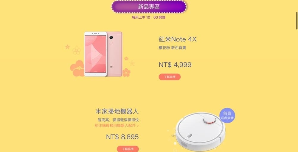另一個不知道該不該算是民生相關的活動了,就是向來以高 C/P 值、極簡風格設計和智慧操作受到許多朋友喜愛的小米也在這週 6 日與 7 日舉辦了一年一度的米粉節活動。這次米粉節活動中,不僅有著多款明星商品,例如空氣清淨機、小米手環 2 、行動電源等大特價,就連米家掃地機器人和粉紅色的紅米 Note 4 也在這活動中首賣!