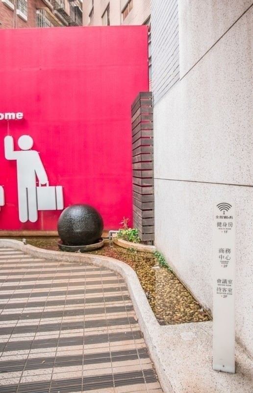 接下來,就是很有特色的紅色主牆,相當搶眼