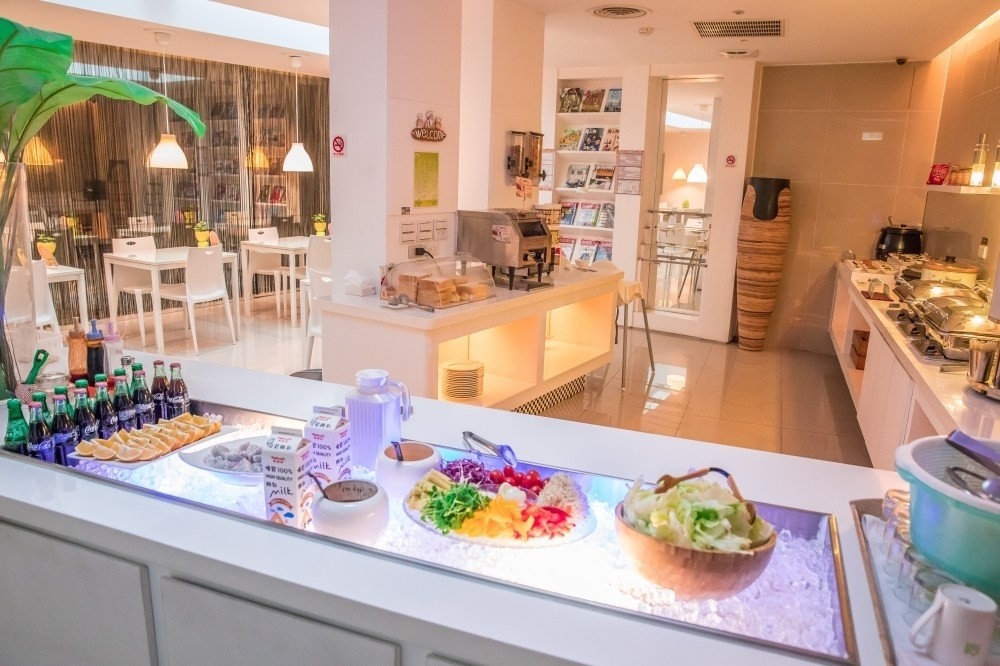 隔天一早,熊就來體驗168 green motel綠的旅館最大重點,也是非常難得的特色,就是現點現做的自助早餐