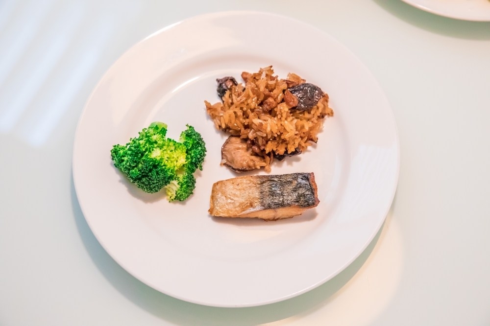 還有綠色花椰菜與油飯,搭配一塊烤鯖魚,一早起床就能有個元氣滿滿的開始,實在非常讓人振奮!