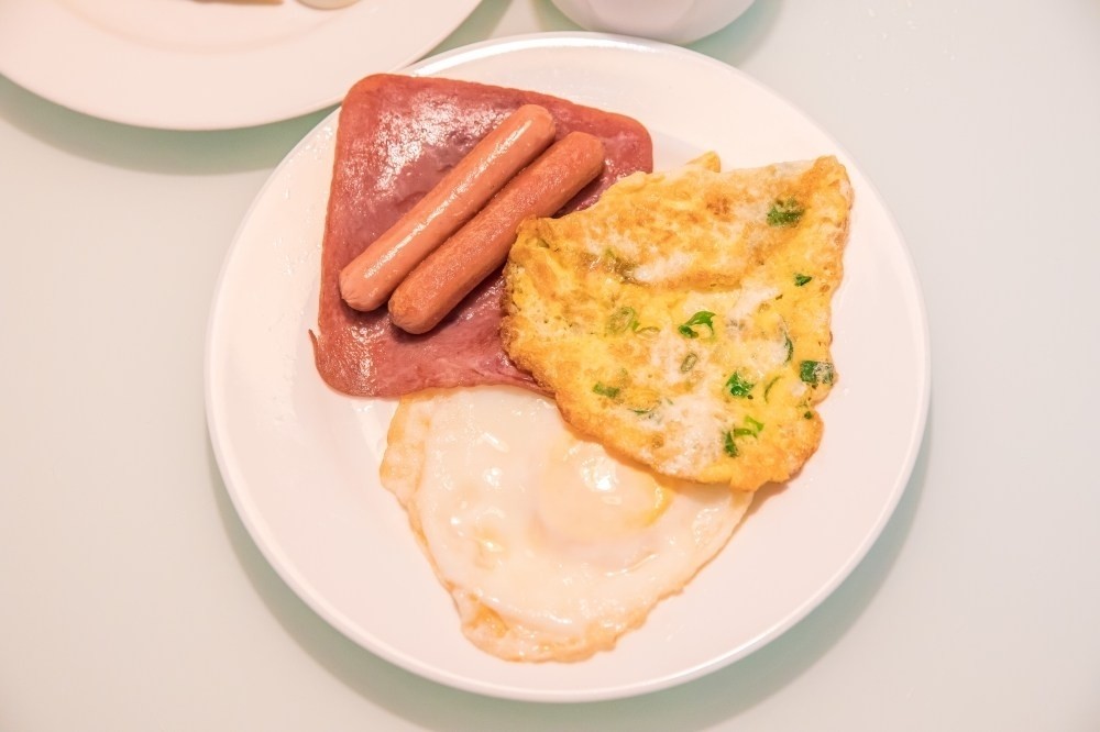 荷包蛋跟香煎蔥蛋味道都不錯,熱狗火腿也是煎得剛剛好