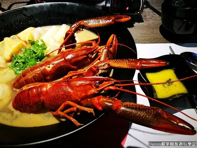 端上桌兩大隻的澳洲淡水小龍蝦就在碗裡超霸氣,光是外觀來說就很犯規,每桌幾乎都有點上桌立馬變成拍照焦點