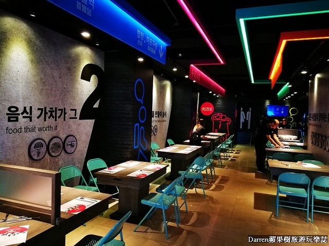 桌間距離寬敞不會感覺太擁擠,四人桌不同客人也會使用板子隔開,用餐時少不了韓國音樂及影片放送