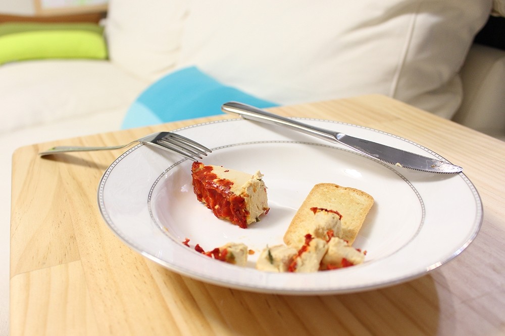 晚上切一小塊甜椒乾酪來吃就很夠了,拿餅乾來夾或單切小塊來吃都很棒!