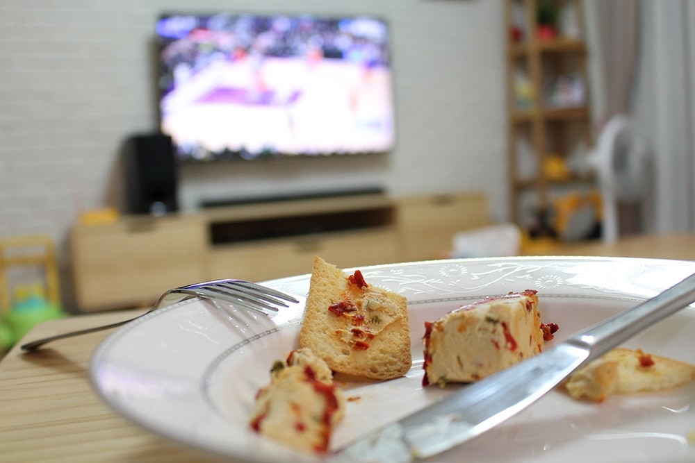 晚上吃著甜椒乾酪搭紅酒看球賽太蘇湖!