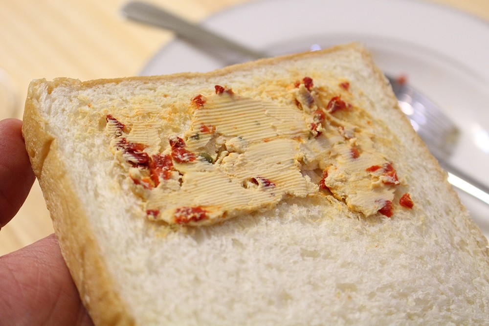 恰咪說要自己抹起司,但因為再給她抹下去我大概傍晚才會到公司,所以後面我就自己出手幫忙了。
