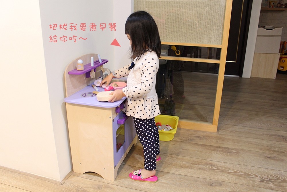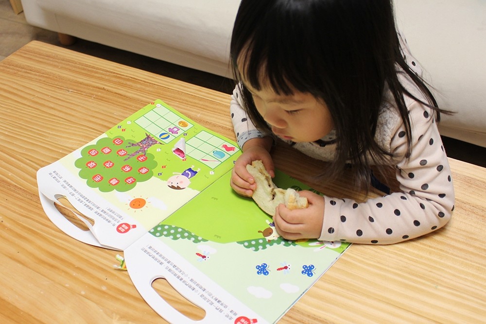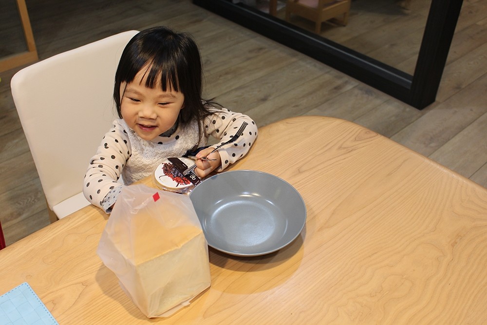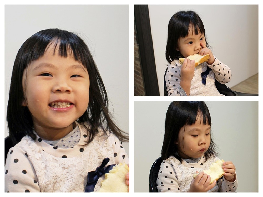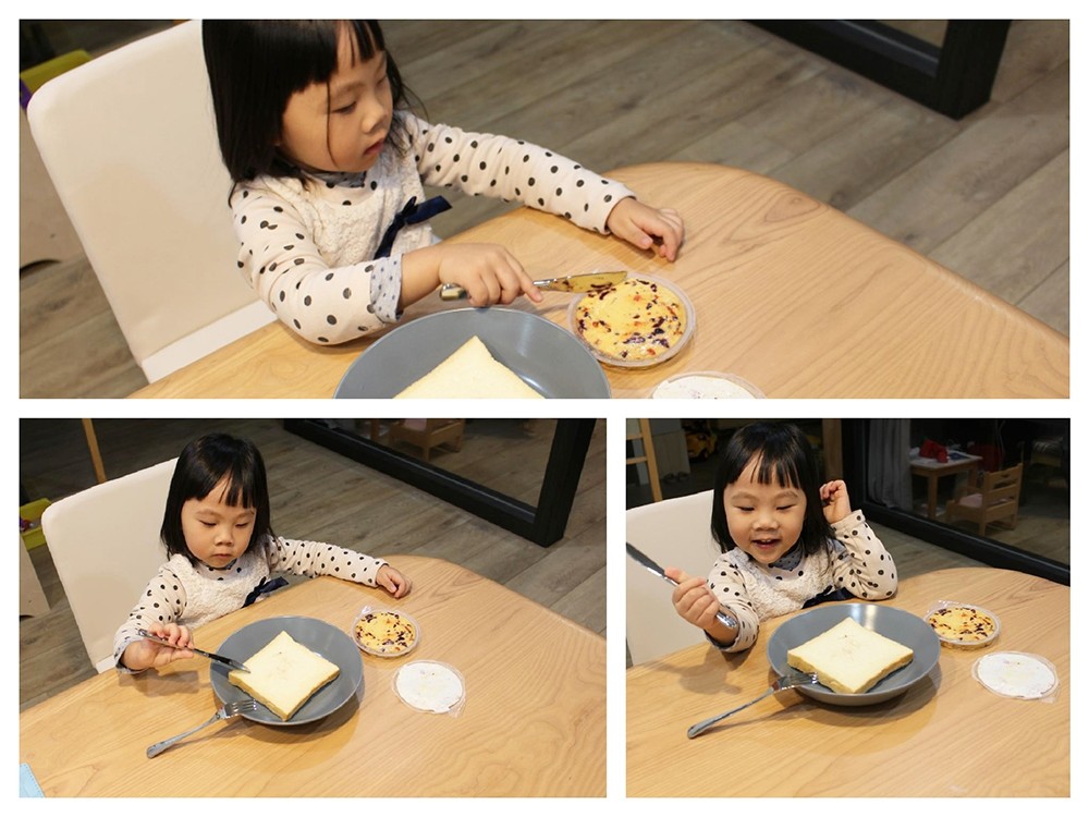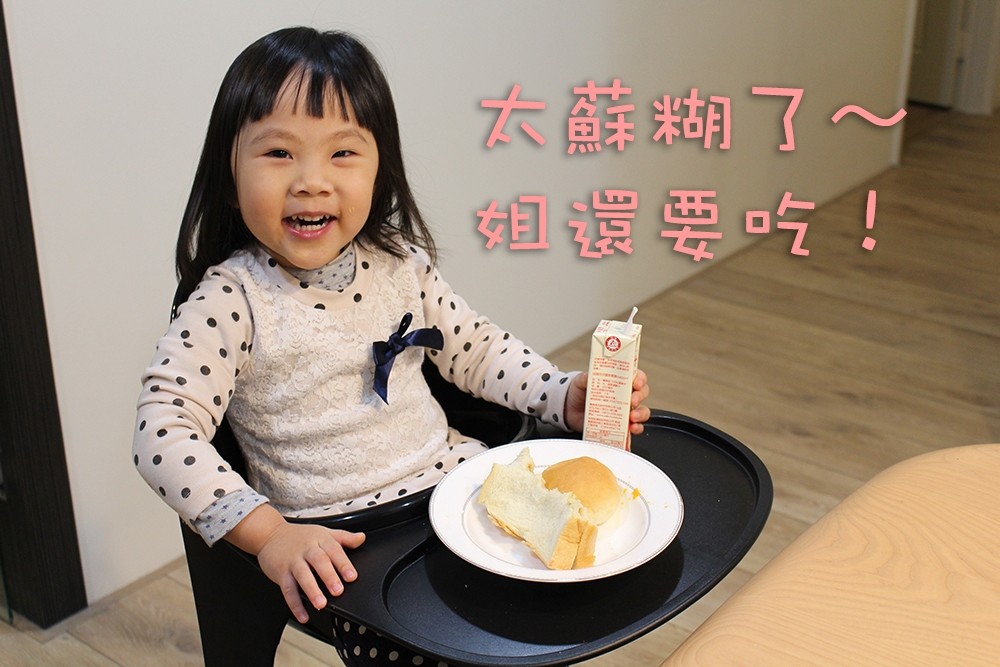 坐不住的小妹妹,後來就讓她邊玩邊吃了,其實平常偶爾也可以變成簡單點心也不錯(我就趁這段時間趕快準備我的東西準備上班了!)