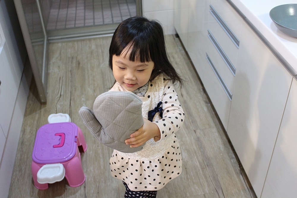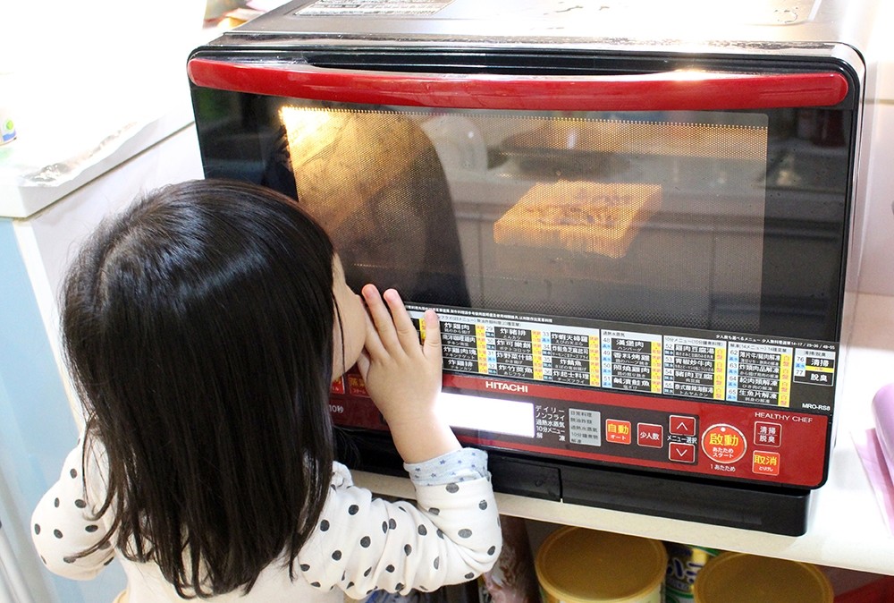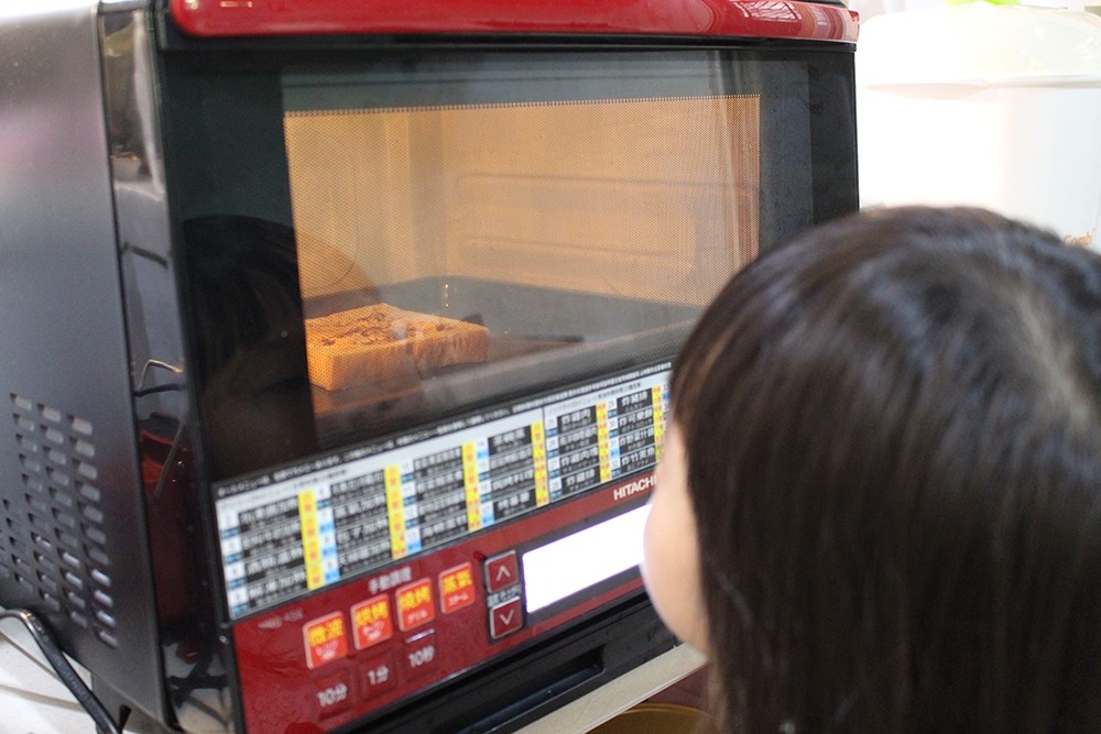 接著就是等出爐的時間了,雖然只要短短兩分鐘,但是對小妹妹來說好像等了兩個小時一樣。