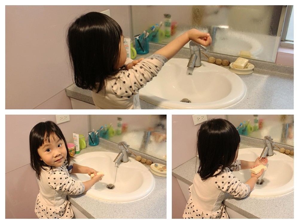 漫畫省略了中間的混亂狀況,再弄下去真的就要遲到了,一打一又要在上班前完成,動作就只能快了!當然很多細節還是要多注意一下,因為我們家小恰咪想要跟我一起做早餐,所以前置作業當然是先洗洗手啦!這裡就順便幫她洗臉什麼的完成早上的簡單梳洗。