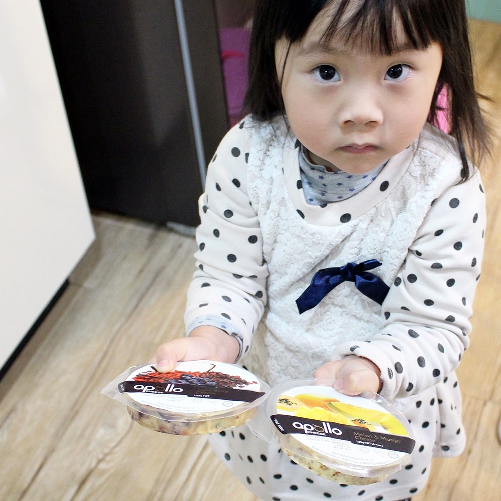 小人吃得超開心的,Apollo 莓果乾酪有香濃的起司之外,裡面還咬得到蔓越莓、藍莓和養身的枸杞,酸酸甜甜的滋味和 Cheese 搭配起來還真的不錯吃耶!難怪小妹妹吃到不行,不會有甜膩的感覺,非常清爽呢!