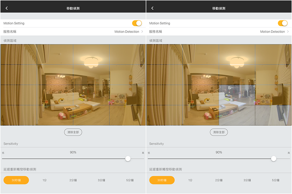 另外是許多 Smart Cam 也都會有的動作偵測通知,網路攝影機會偵測環境的圖像變動,協助發送通知到手機。