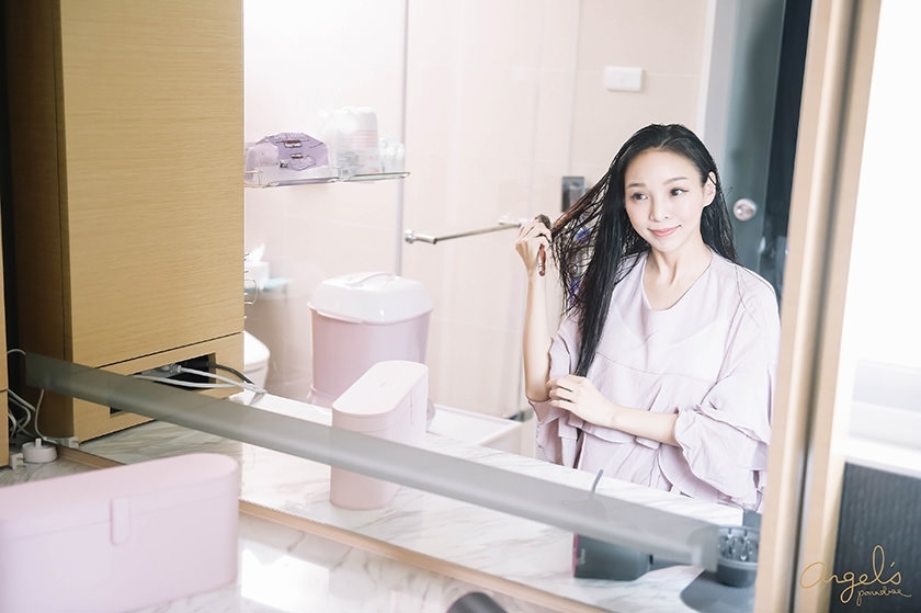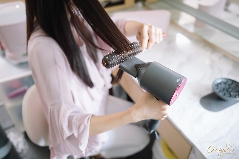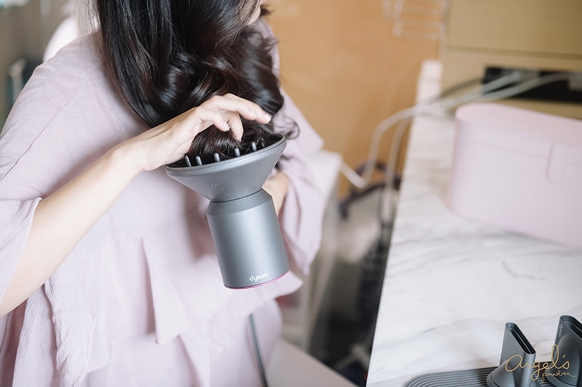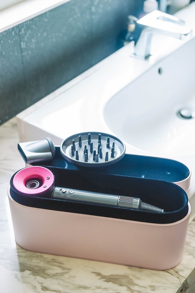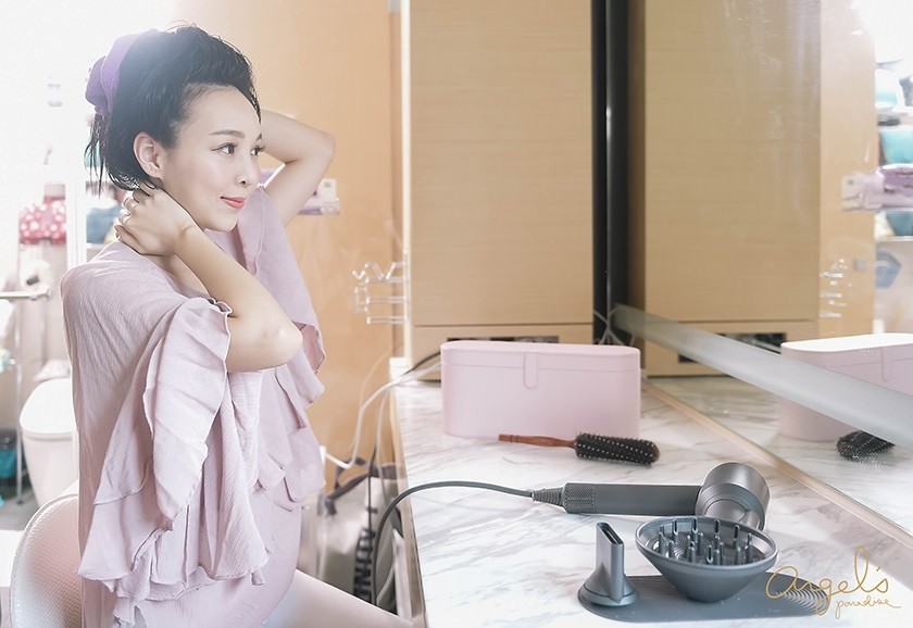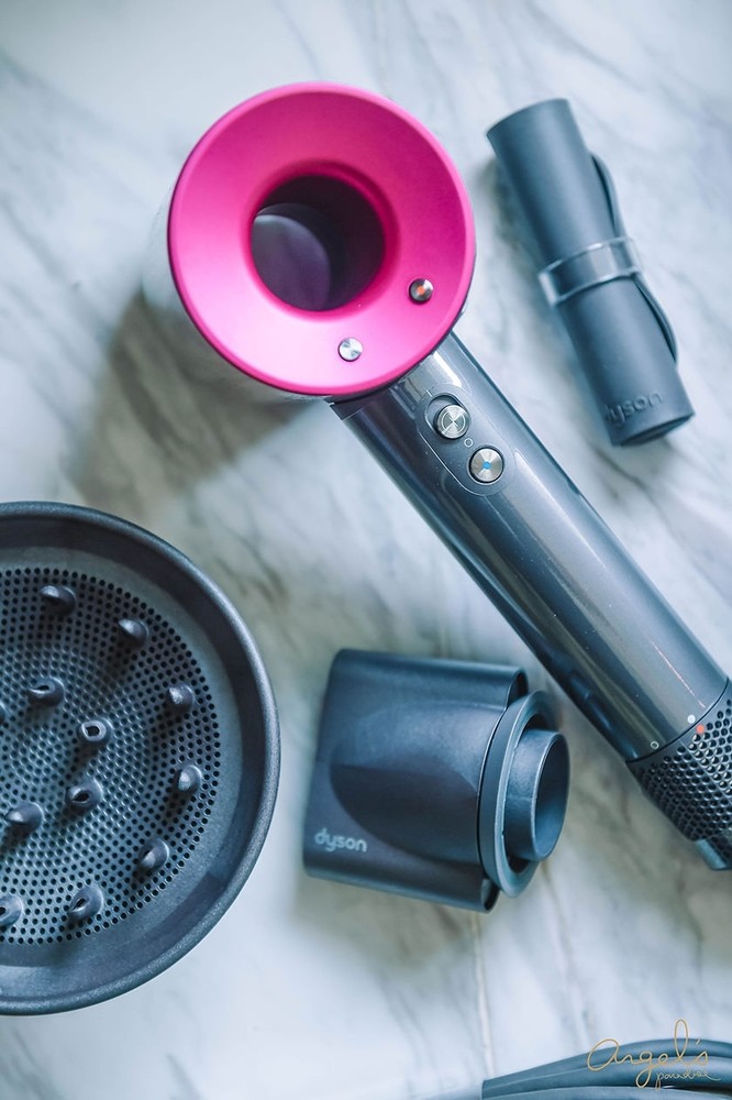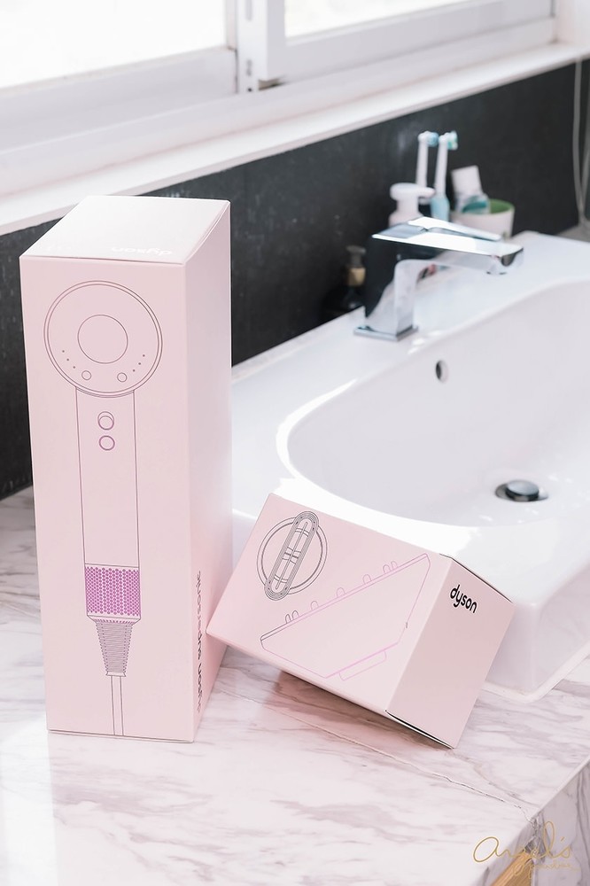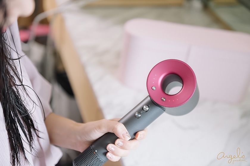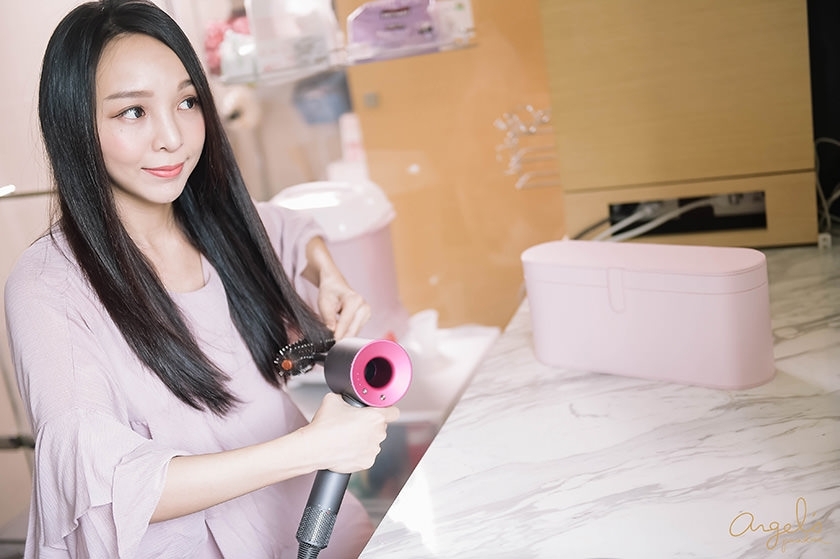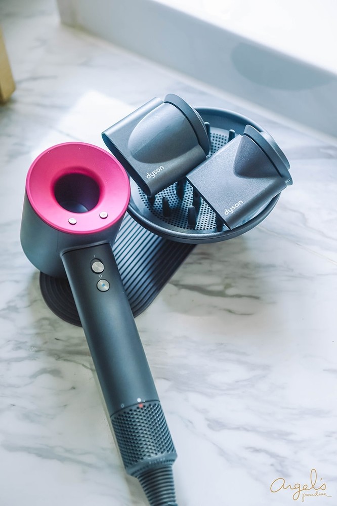 搭配的Dyson吹風機,是桃紅色的款式喔!