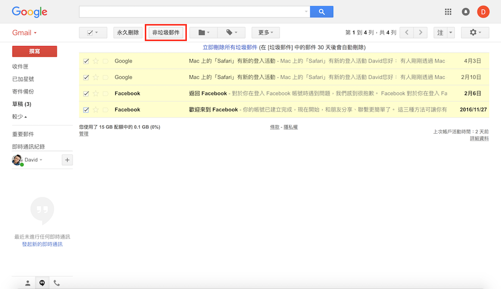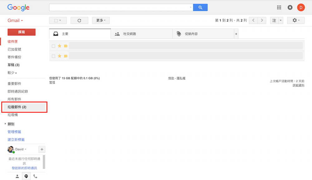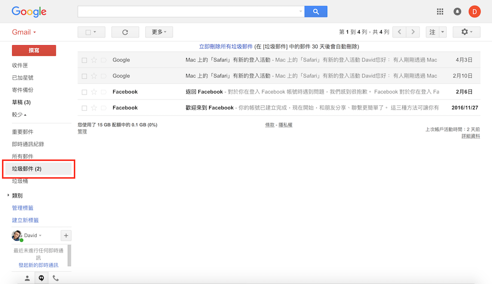 第一步 – 進入「垃圾郵件」收件匣