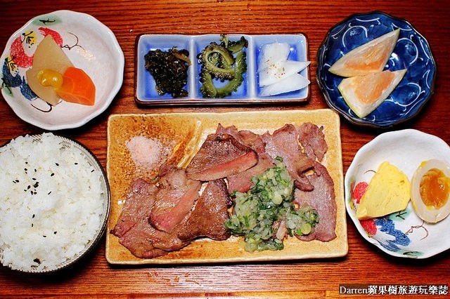 厚切牛舌燒肉定食 NT:350,附味噌湯、配菜*4、漬物*3、飯後水果
