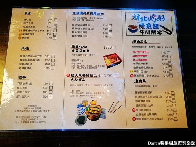 林北烤好羅東店菜單,有串燒、鰻魚燒肉雙拼丼、鰻重、雙人木桶鰻飯、燒肉定食、燒肉丼等