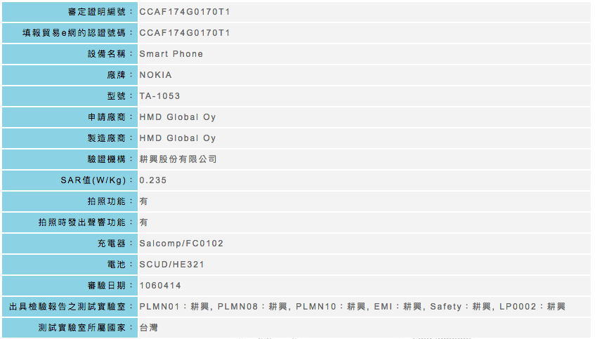 NCC 審核通過名單中赫然出現由 Nokia 品牌的手機製造公司 HMD Global 申請送件資料型號為 TA-1053 的手機,根據了解 TA-1053 也就是這次 MWC 推出三款新機中的 Nokia 5。